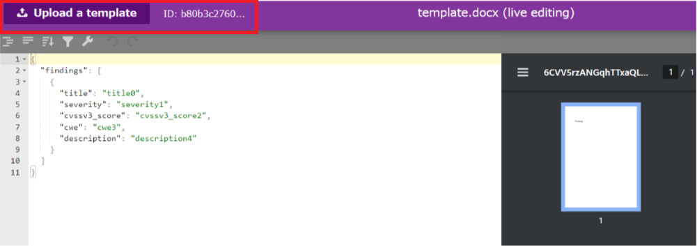 テンプレートを作成したらCarbone Studio(https://(Carboneのホスト名とポート番号)/)にアクセスしてGUIからテンプレートをアップロードし、テンプレートIDを取得します。