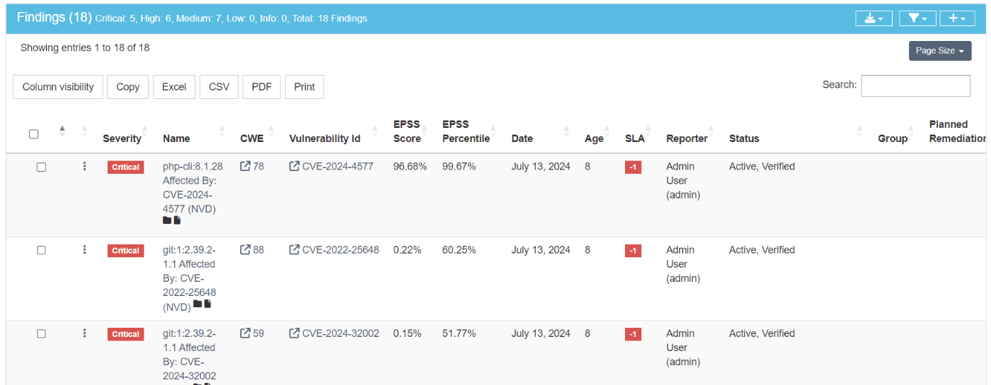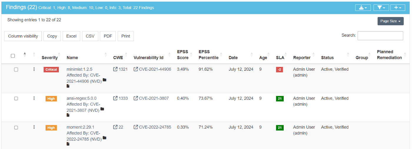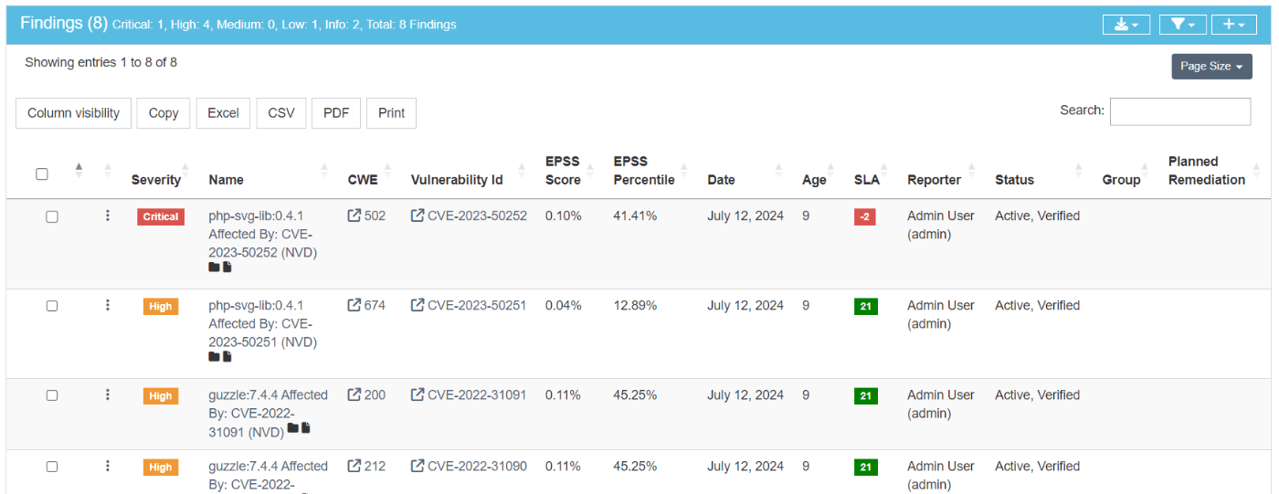 ビルドが完了するとDefectDojoに脆弱性情報が反映されます。