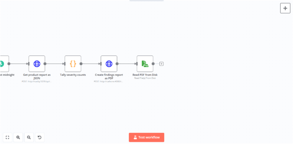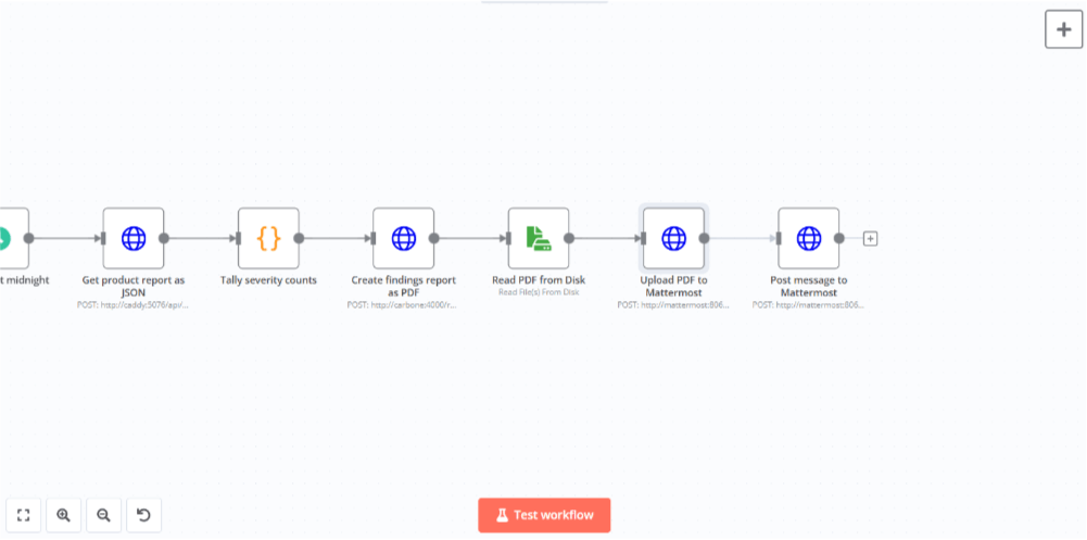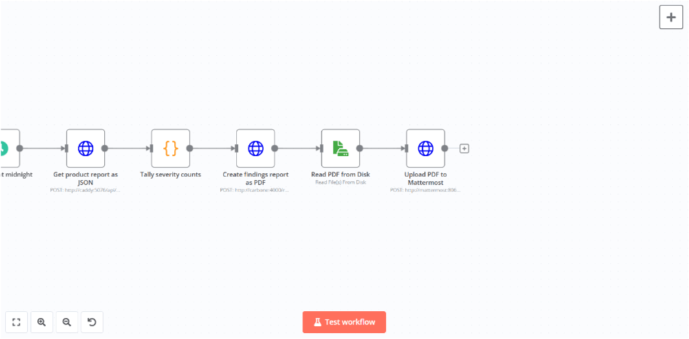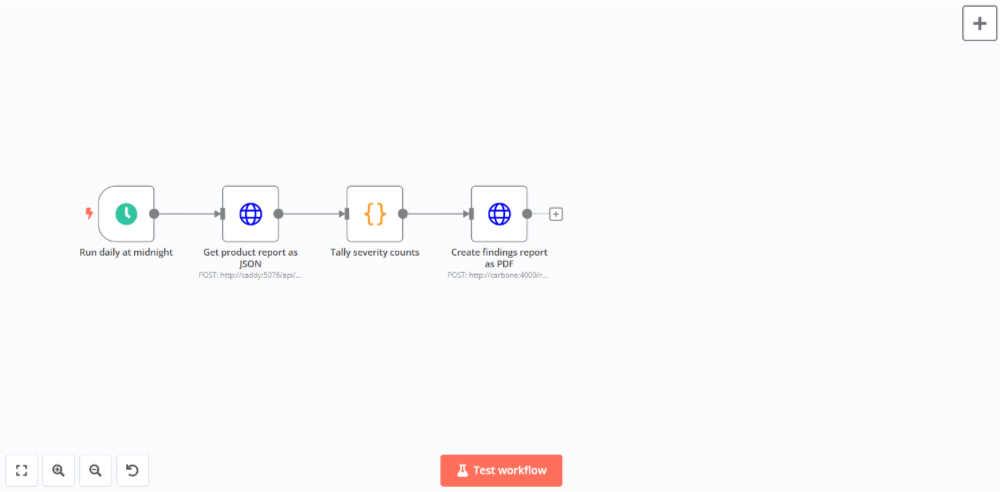 上記パイプラインに加えて、脆弱性管理・監視ツールに連携した情報を日次でPDFレポートとして通知するワークフローも作成します。