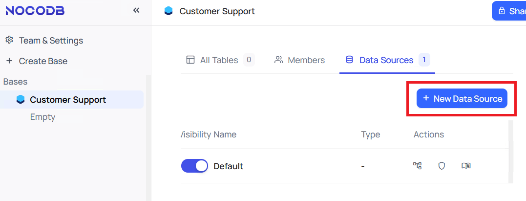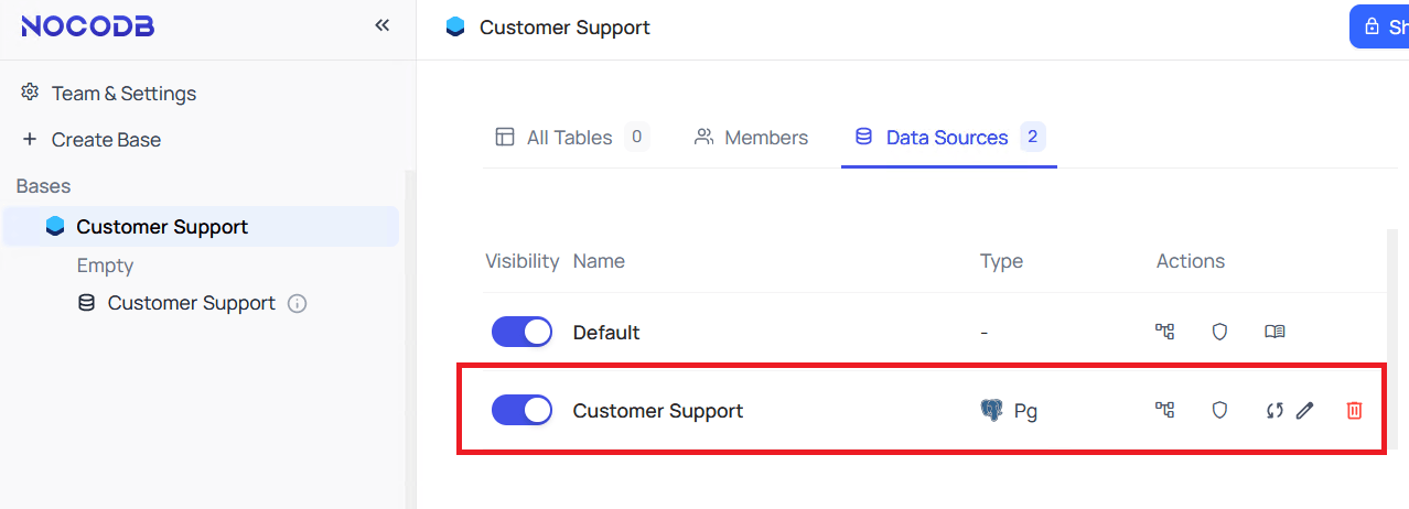 データソースが追加されると下記イメージのようになります。なお、一つのBaseに追加できるデータソースは一つのみとなっています。