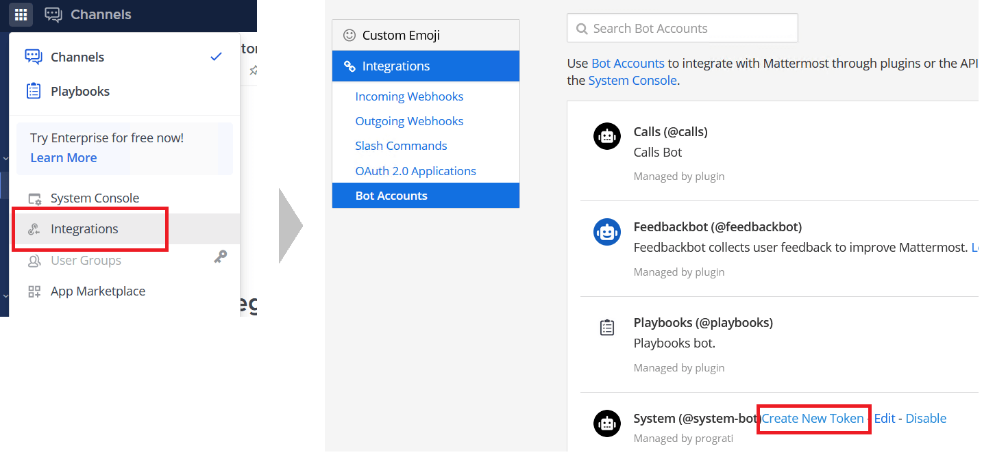 >Contact No.: {{ $json.contact_no }}今回はBotアカウントがメッセージを投稿するようにしたいので、アクセストークンはBotアカウントのものを作成します。 アクセストークンはIntegrationsからBot Accountsを選択しCreate New Tokenで作成することができます。