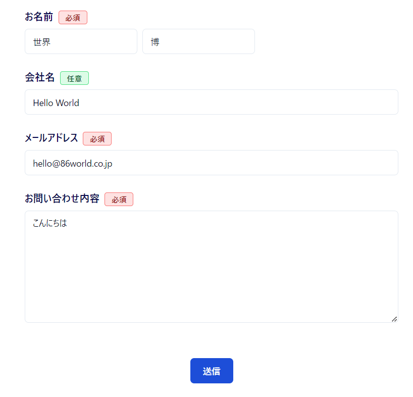 ワークフローをアクティブにしてCloudflare Pagesにデプロイしたお問い合わせフォームからお問い合わせを送信してみます。
