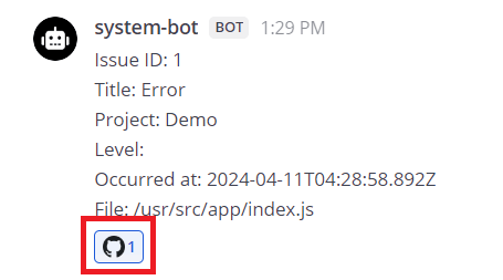 GitHubのIssueの登録は、チャットツールに通知されたエラーに対して特定のリアクションを行った場合に、自動的に行われるようにします。 今回は、下図のようにカスタムemojiを追加し、そのemojiが使われたらIssue登録のイベントをワークフローエンジンに送信します。
