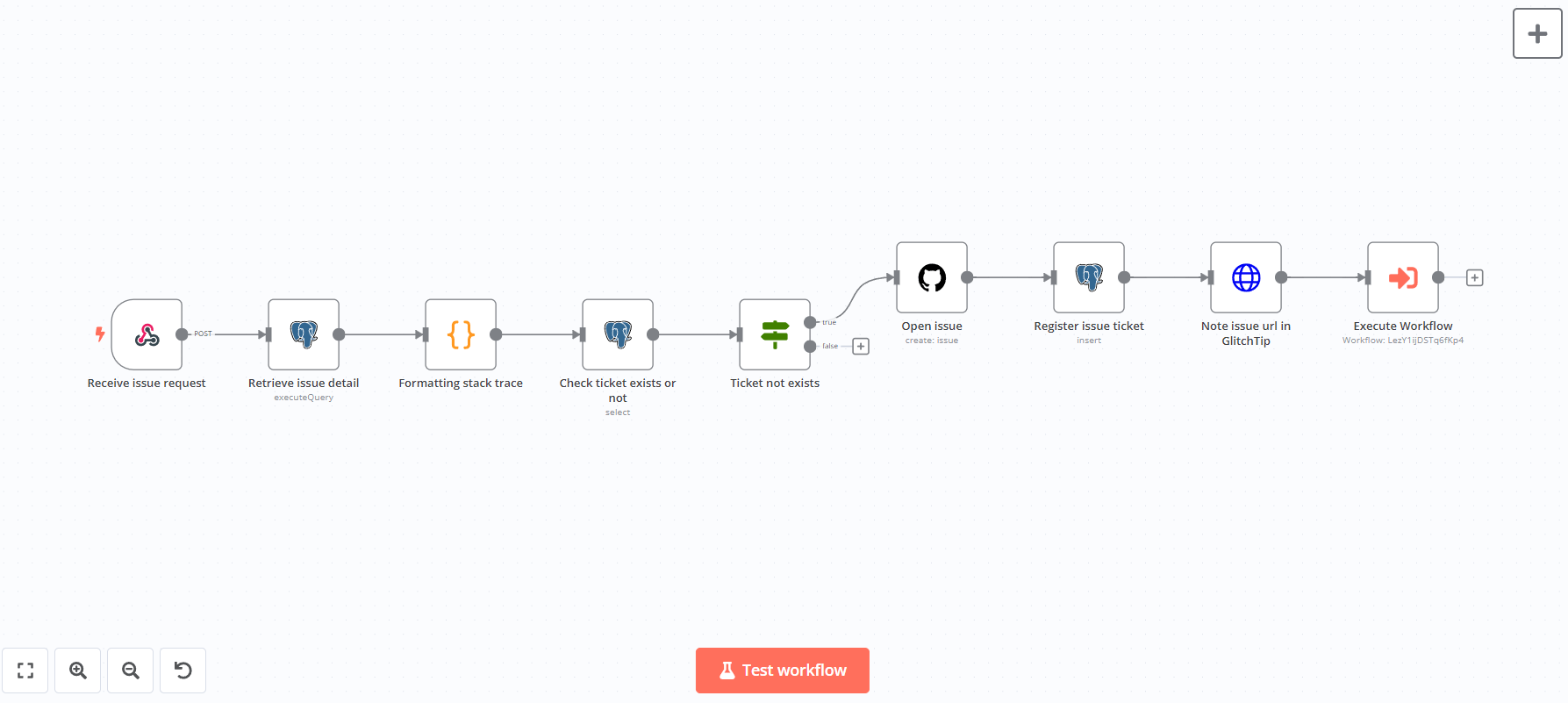 前の記事でWebアプリケーションで発生したエラーを通知する簡単なワークフローを作成しました。 本記事では通知されたエラーをGitHubのIssueを使って管理するワークフローを作成します。