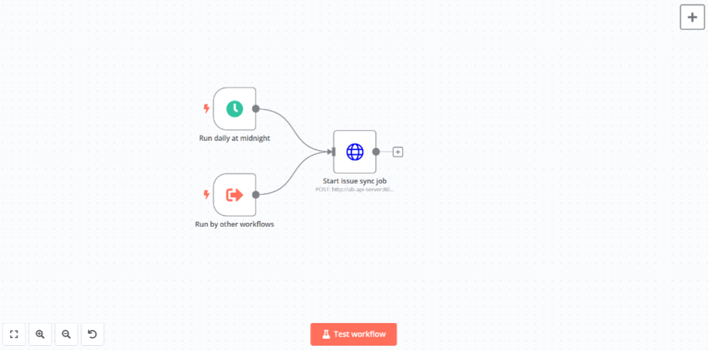 {{ $json.noAssignee.map(i => '- ' + i).join('\n') }}これでIssue通知のワークフローは完成です。 最後にIssue登録ワークフローからIssue通知のワークフローを実行するようにします。